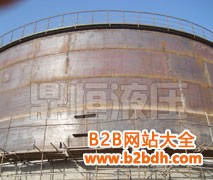 液压提升设备提升原理利用液压提升装置均布于储罐内壁圆周处,先提升罐顶及罐体的上层壁板,然后逐层组焊罐体的壁板。采用自锁式液压千斤顶和提升架、提升杆组成的液压提升机,当液压千斤顶进油时,通过其上卡头卡紧并举起提升杆和胀圈,从而带动罐体向上提升;当千斤顶回油时,其上卡头随活塞杆回程,此时其下卡头自动卡紧提升杆不会下滑,千斤顶如此反复运动使提升杆带着罐体不断上升,直到预定的高度。当下一层壁板对接组焊后,打开液压千斤顶的上、下松卡装置,松开上下卡头将提升杆以及胀圈下降到下一层壁板下部胀紧、焊好传力筋板,再进行提升。如此反复,使已组焊好的罐体上升,直到后一层壁板组焊完成,从而将整个储罐安装完哔。